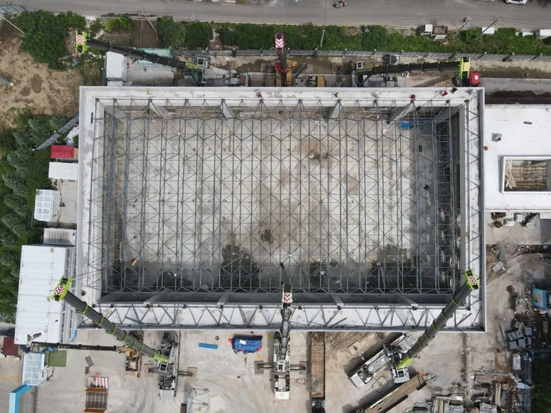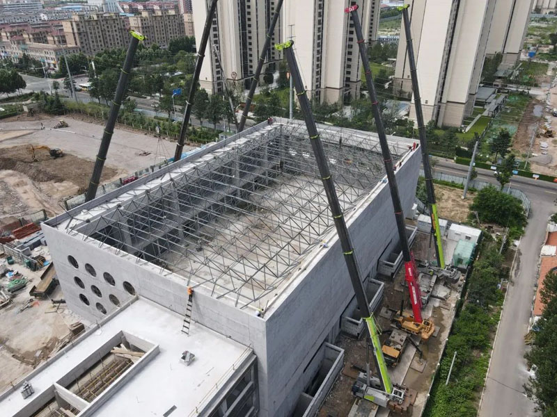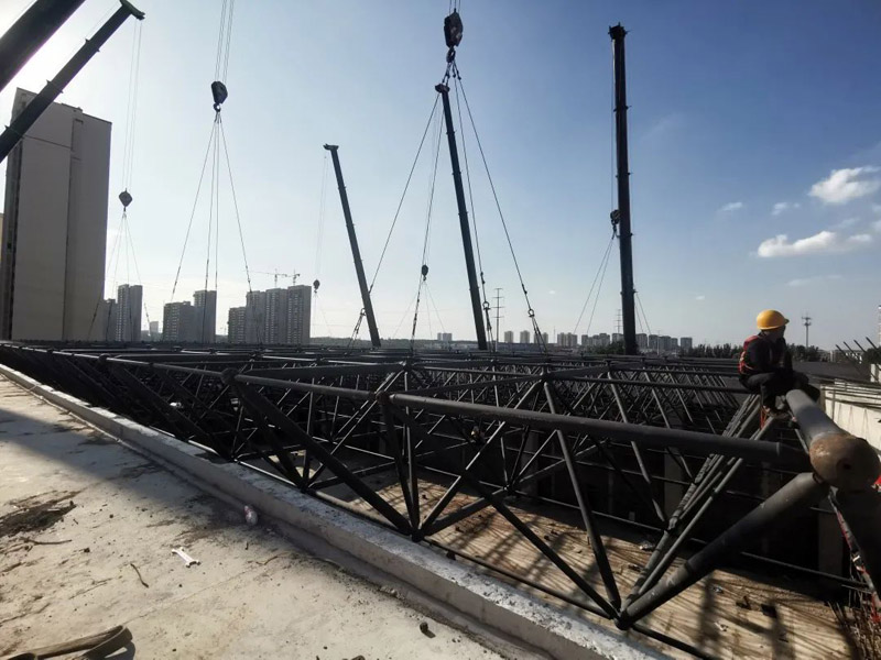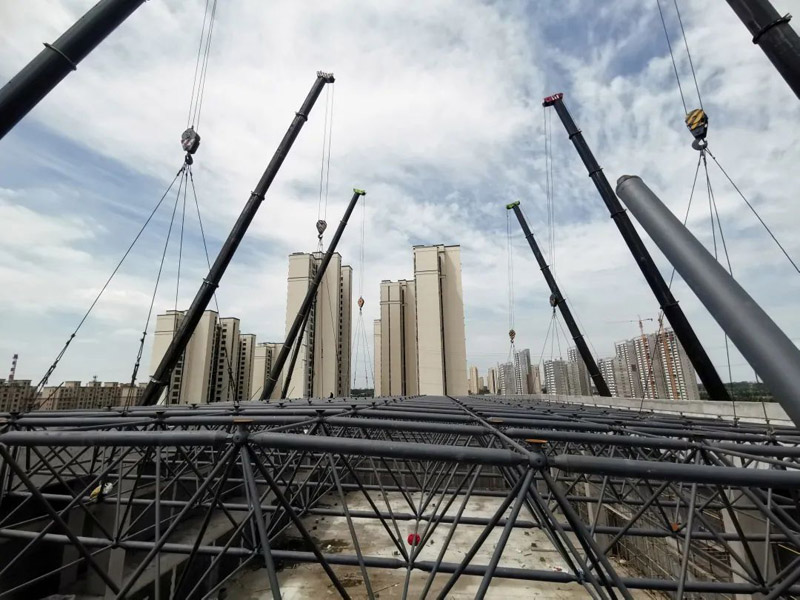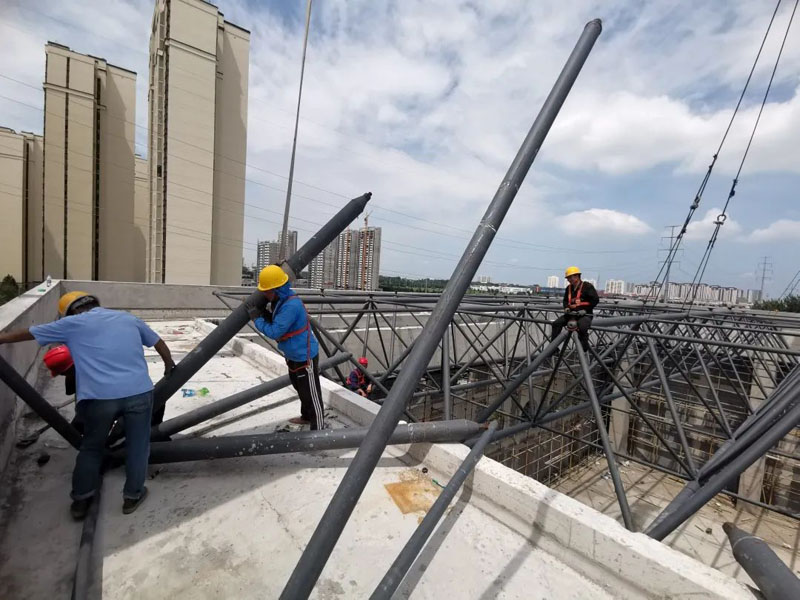 膠州中云振華教育集團(tuán)泰州路校區(qū)擴(kuò)建項目網(wǎng)架工程,為正放四角錐螺栓球網(wǎng)架。平面投影尺寸為55.8m×33.6m,網(wǎng)架厚度2.66米,本網(wǎng)架為結(jié)構(gòu)由24個支座支撐。建筑結(jié)構(gòu)安全等級為一級,設(shè)計使用年限為50年,基本風(fēng)壓值0.6KN/㎡,基本雪壓0.25KN/㎡,上弦恒荷載2.0KN/㎡,活荷載0.5KN/㎡;下弦恒荷載0.5KN/㎡,活荷載0.5KN/㎡。